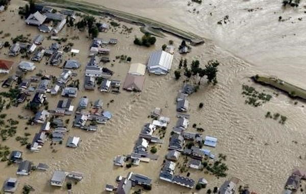 Nhiều nhà cửa bị nước lũ nhấn chìm do mưa lớn sau khi siêu bão Hagibis đổ bộ vào tỉnh Nagano, miền Trung Nhật Bản ngày 13/10/2019.