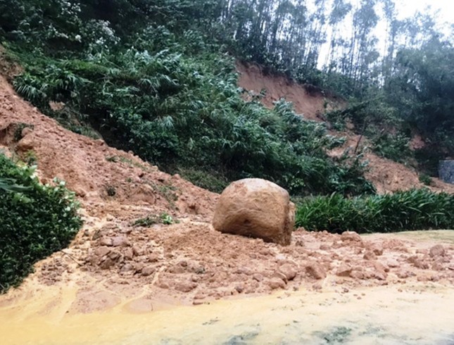 Sạt lở đồi núi gây tắc nghẽn giao thông tại núi Phước Tượng, huyện Phú Lộc, tỉnh TT-Huế.