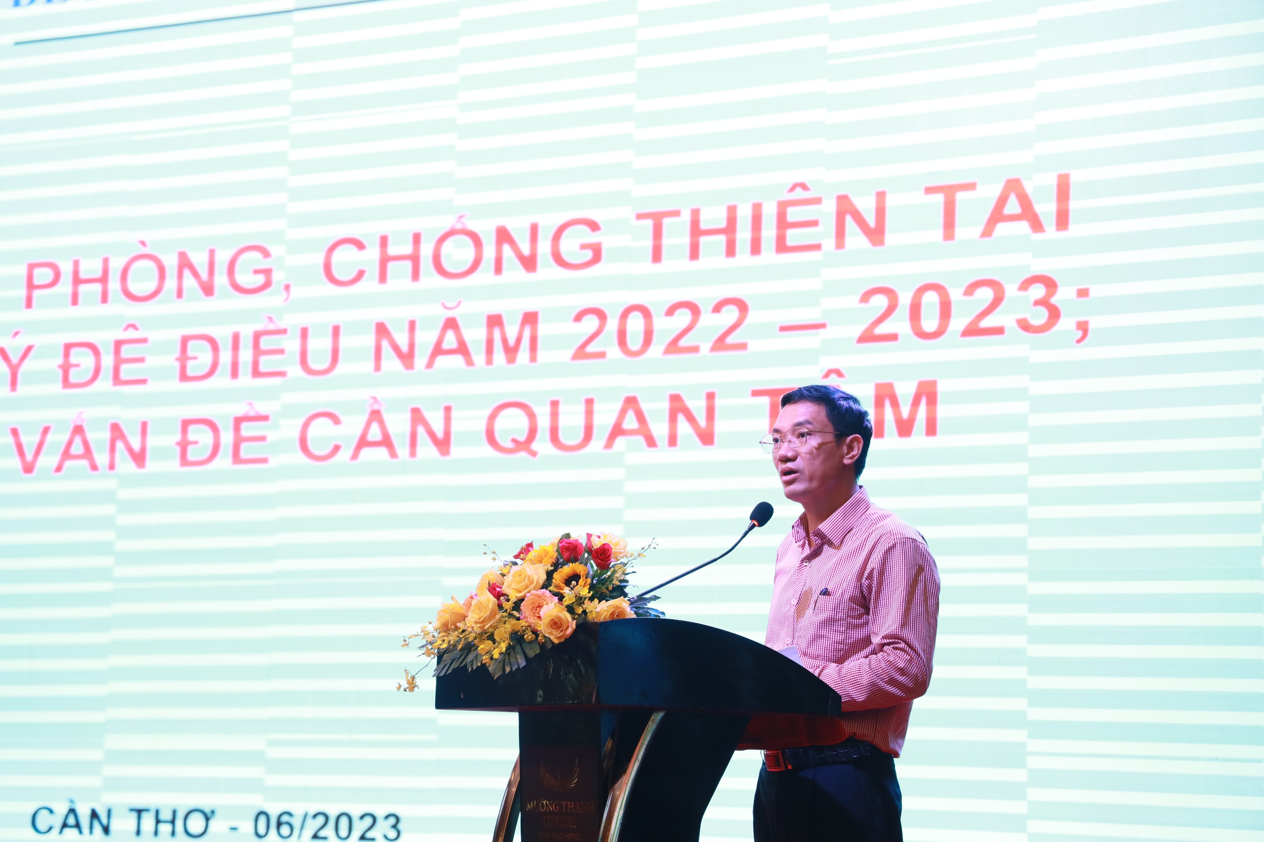 Phát biểu tại Hội nghị, Ông Nguyễn Văn Sử - Giám đốc Sở Nông nghiệp và PTNT cho biết trong 06 tháng đầu năm 2023, trên địa bàn thành phố Cần Thơ xảy ra 03 loại hình thiên tai gồm: Sạt lở bờ sông; Triều cường và Mưa kèm theo dông lốc làm sạt lở hoàn toàn 07 căn nhà, sạt một phần và ảnh hưởng nghiêm trọng 19 căn nhà, tổng chiều dài ảnh hưởng do sạt lở là 933m. Ông Nguyễn Văn Sử nhấn mạnh Hội nghị tập huấn rất quan trọng và hết sức thiết thực, cung cấp chia sẻ nhiều thông tin, tài liệu quan trọng cũng như nhiều bài học kinh nghiệm thực tiễn tại các vùng miền trên khắp cả nước giúp cho các địa phương có thêm nhiều kiến thức, kinh nghiệm quý báu trong việc chủ động trong phòng ngừa thiên tai; với mục tiêu sau cùng là giảm thiểu thiệt hại do thiên tai, chủ động bảo vệ an toàn hệ thống đê điều.