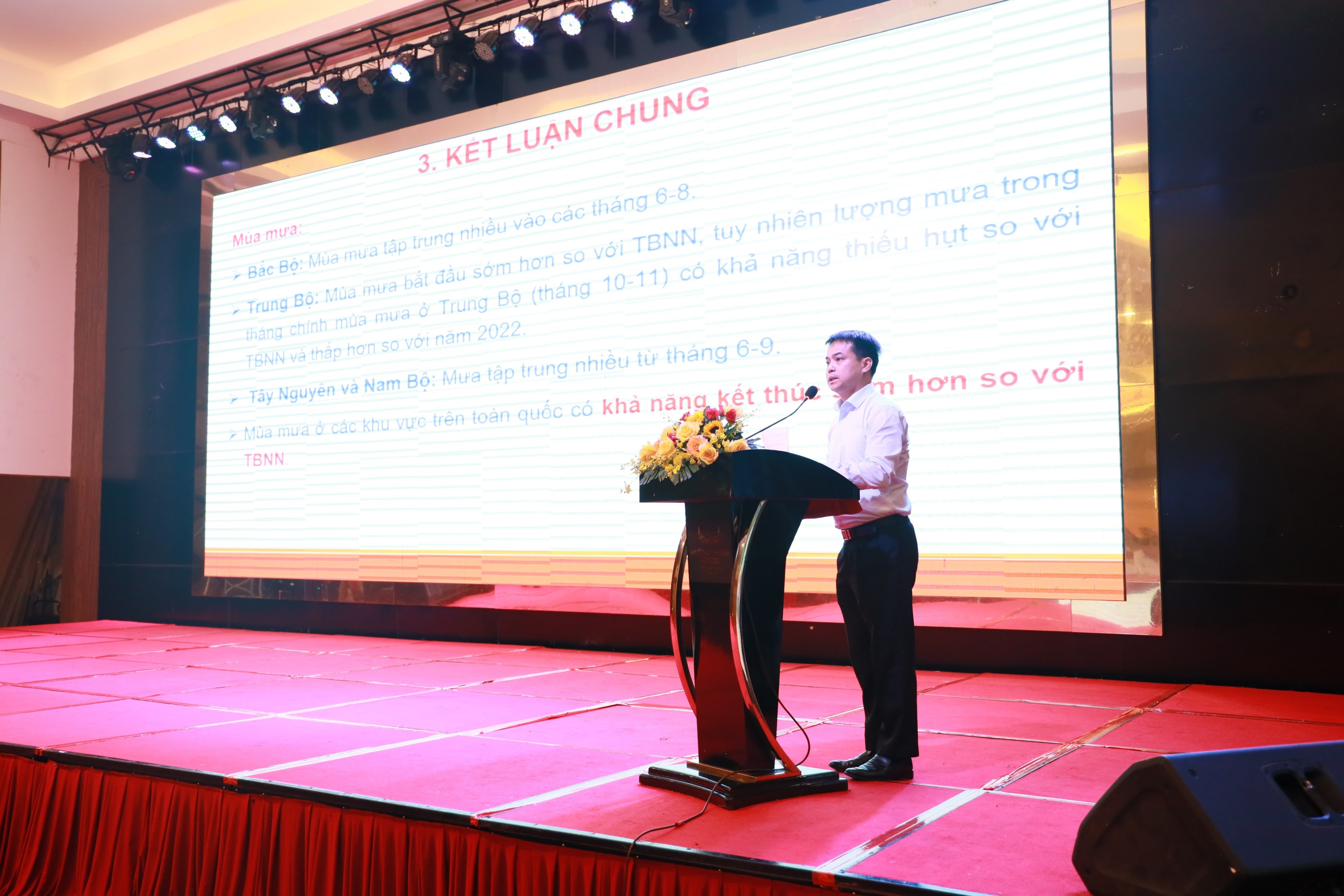 Ảnh: Ông Phùng Tiến Dũng – TP Dự báo TV Trung Bộ, Tây Nguyên và Nam Bộ - phát biểu tại Hội nghị.