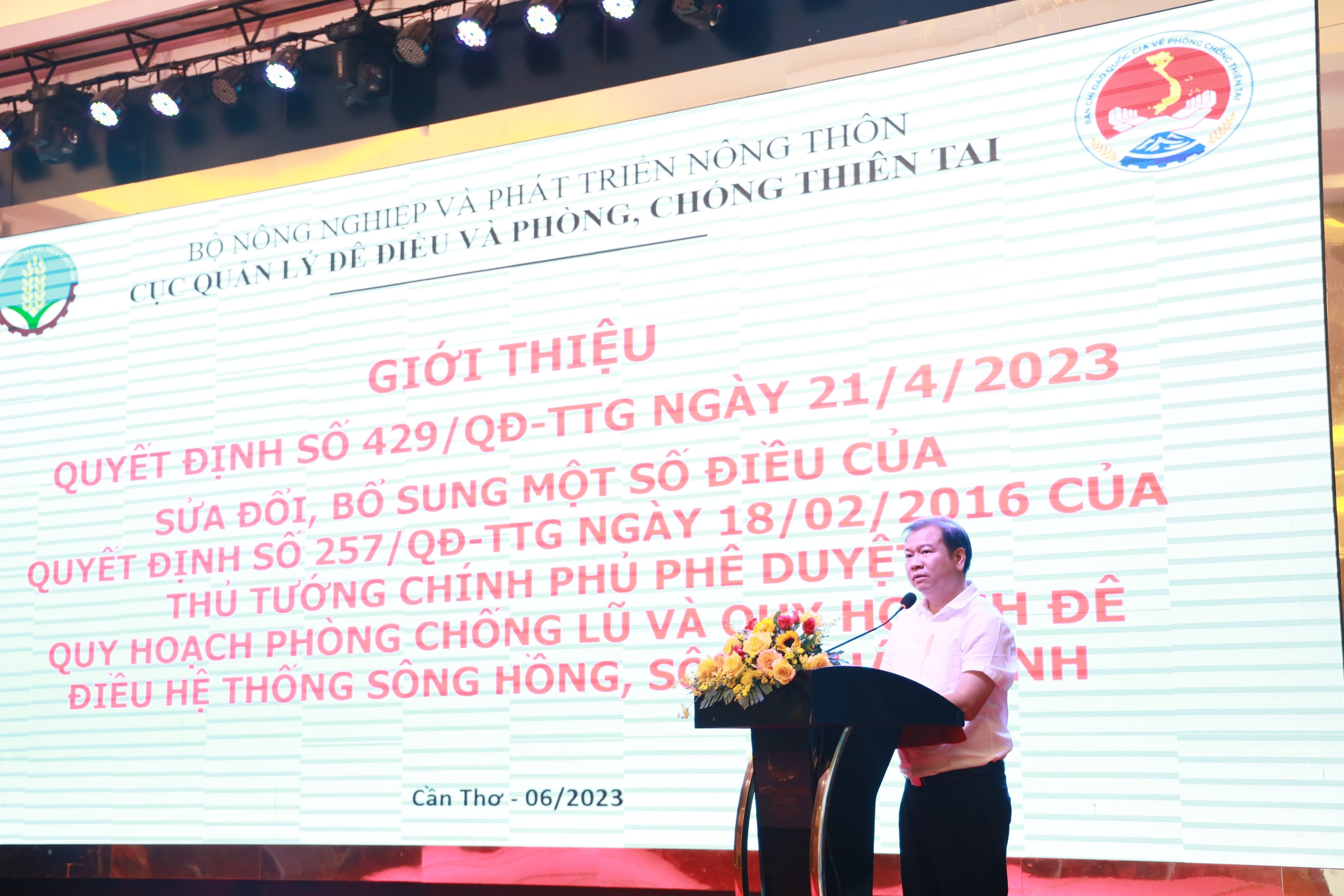 Ảnh: Ông Trần Công Tuyên - Trưởng phòng Quản lý đê điều - giới thiệu Quyết định 429/QĐ-TTg của Thủ tướng Chính phủ.