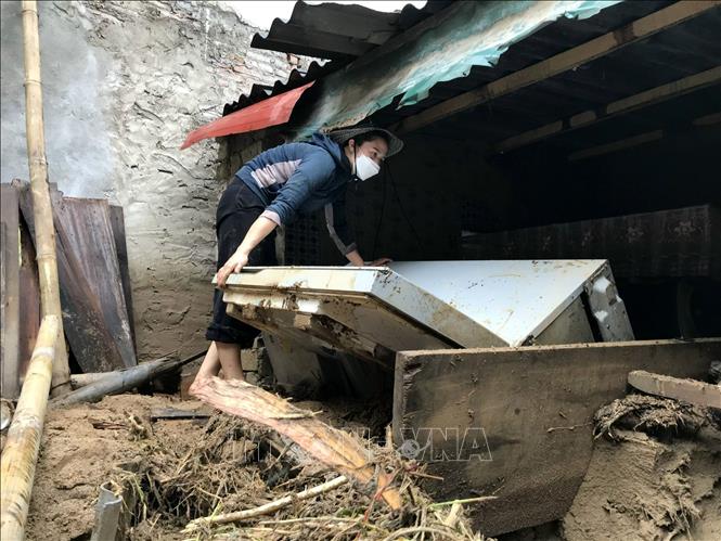 Người dân khối 1, thị trấn Mường Xén, Kỳ Sơn (Nghệ An), cố gắng tìm kiếm những tài sản còn sót lại sau trận lũ quét.