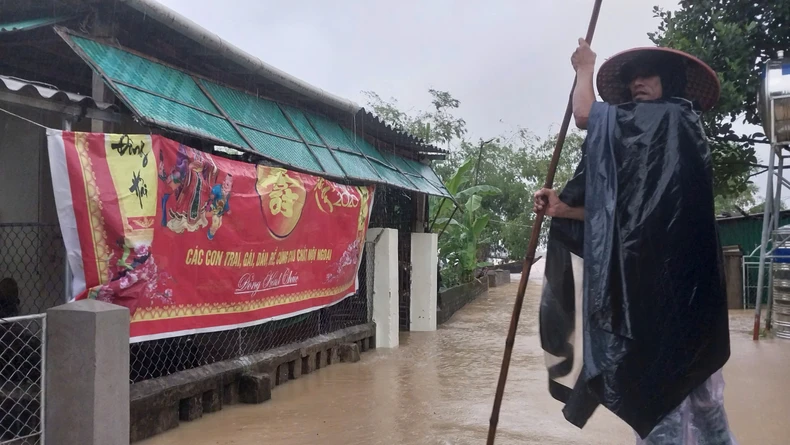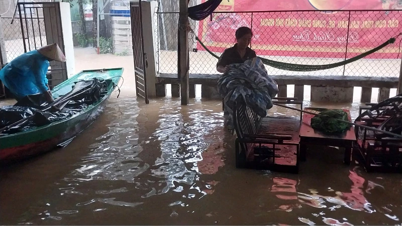 Anh Nguyễn Văn Trường cho hay: “Nước dâng mạnh nhất là lúc 4 giờ sáng nay. Con cái đã đưa đi rồi, hai vợ chồng ở lại để chằng chống, lo nhà cửa".