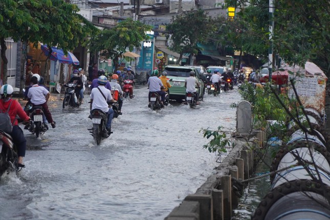 Ngoài đường Trần Xuân Soạn, nhiều tuyến đường vùng trũng, thấp và ven sông ở TPHCM như Huỳnh Tấn Phát (quận 7), Lê Văn Lương, Nguyễn Bình, Đào Sư Tích (Nhà Bè), quốc lộ 50 (Bình Chánh)... cũng xảy ra tình trạng ngập do triều cường vào chiều 10/10.