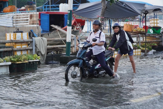 Triều cường dâng cao gây ngập làm ảnh hưởng đến việc sinh hoạt và kinh doanh của người dân.