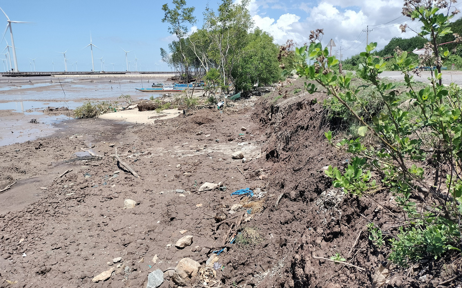 Tình trạng sạt lở trên do rừng phòng hộ ở khu vực nêu trên đã mất hoàn toàn, không còn khả năng chắn gió, chắn sóng, bảo vệ chân đê nên sóng biển đã đánh trực tiếp vào mái và thân đê.