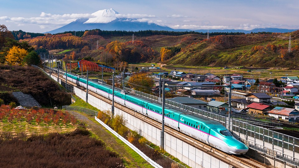 Tàu Hayabusa, 1 tuyến tàu cao tốc thuộc hệ thống Tohoku Shinkansen có tốc độ tối đa 320km/giờ, đang áp dụng cả 2 biện pháp “cứng” (hệ thống) và “mềm” (quản lý) để ứng phó với động đất. Khi phát hiện động đất, nguồn cấp điện cho các đoàn tàu đang chạy ở những đoạn tuyến bị ảnh hưởng sẽ bị cắt để giúp dừng tàu an toàn. (Nguồn: japan.go.jp)