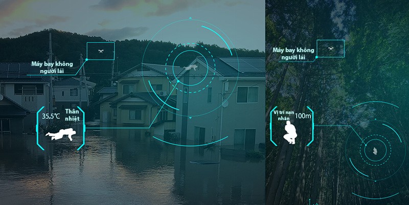 Máy bay không người lái và robot cũng được sử dụng trong các hoạt động cứu hộ, trong đó máy bay không người lái hiện đang được phát triển đặc biệt cho các thảm họa. Theo đó, hệ thống máy bay không người lái này phát hiện người bị nạn thông qua hình ảnh hồng ngoại nhiệt và chiếu lại dưới dạng 3D, giúp xác định vị trí và tình trạng của những nạn nhân cần được giải cứu. Hệ thống này đã được thử nghiệm và dự kiến sẽ được áp dụng cho các lực lượng phòng cháy chữa cháy và cảnh sát Nhật Bản trong tương lai.