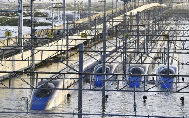 Tập đoàn Đường sắt Đông Nhật Bản (JR East) mới đây thông báo, bão Hagibis đi kèm mưa lớn đã gây ngập lụt ga tàu điện của tuyến đường sắt cao tốc Hokuriku Shinkansen ở thành phố Nagano.