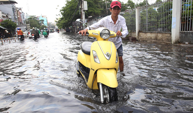 Theo ghi nhận của Zing.vn, đường Nguyễn Văn Khối, đoạn qua công viên Làng Hoa (quận Gò Vấp) ngập lênh láng, kéo dài gần 2 km. Có đoạn nước ngập hơn nửa bánh xe máy. Nhiều người chạy xe máy đến đoạn ngập phải dắt bộ vì xe chết máy.