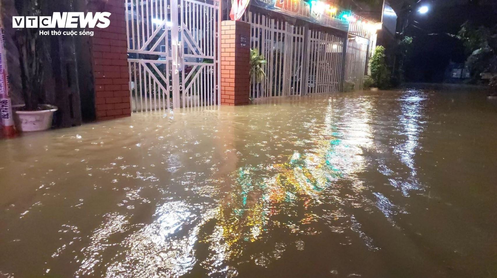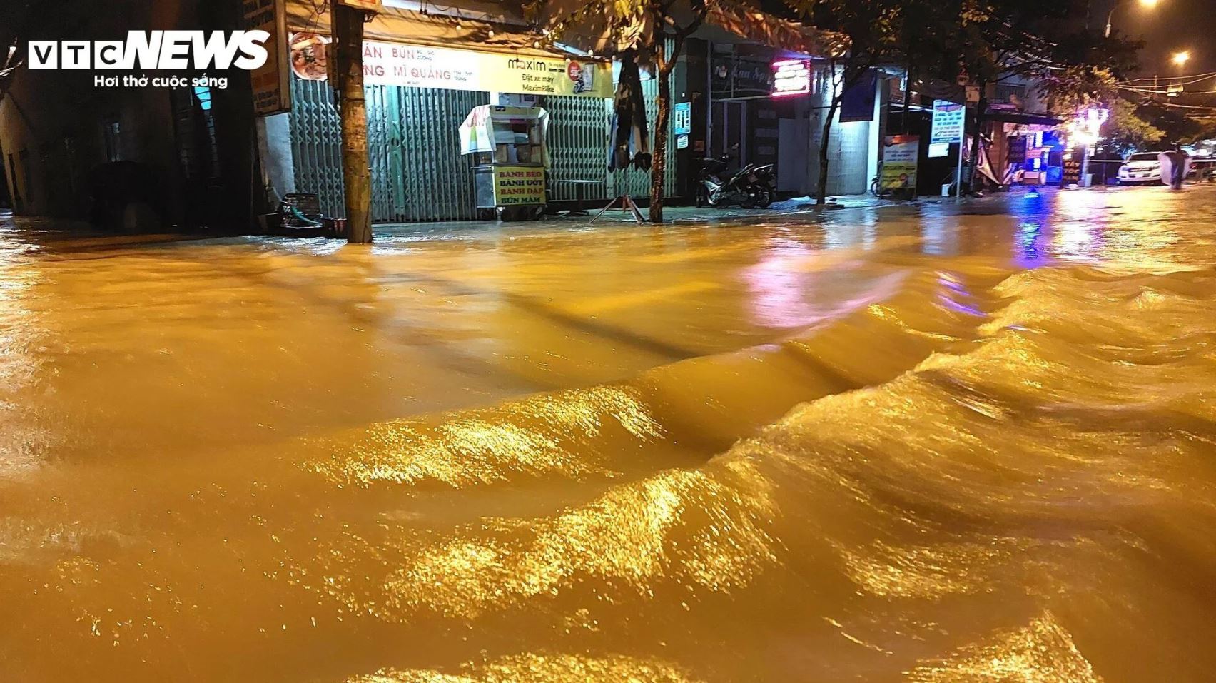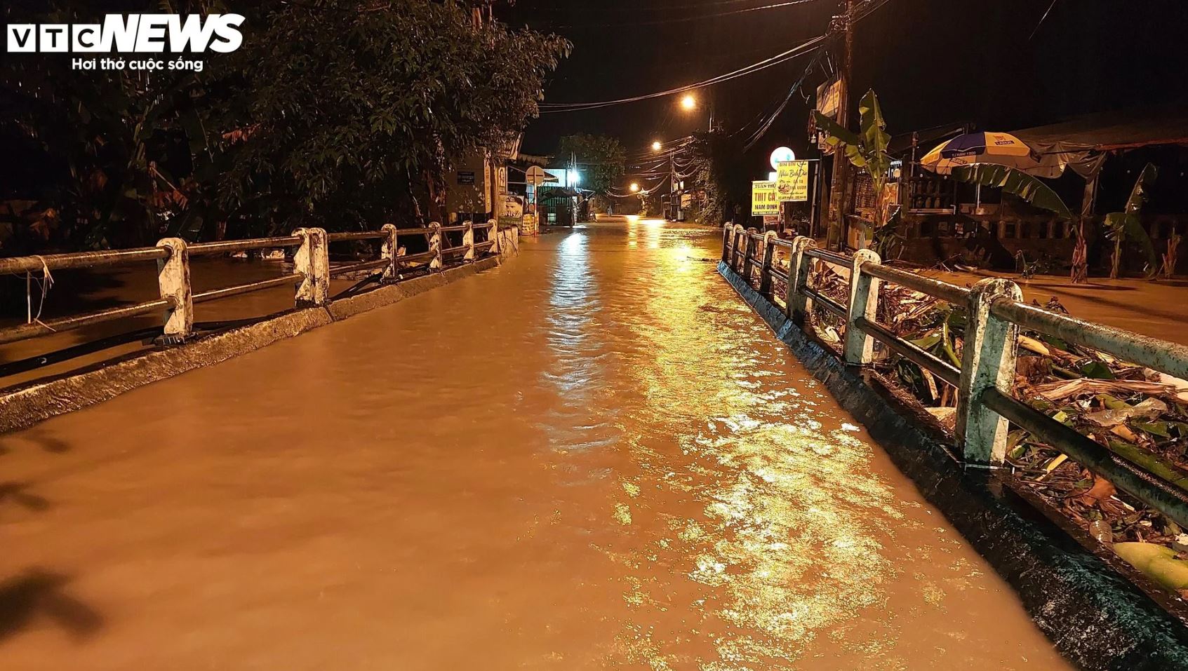 Trên đường Mẹ Suốt, dòng nước đục ngầu chảy xiết như suối lúc 0h30 ngày 8/11.
