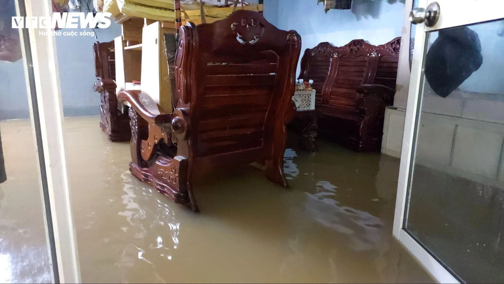 Nước ngập sâu, nhiều hộ dân không kịp di chuyển đồ đạc, bàn ghế.