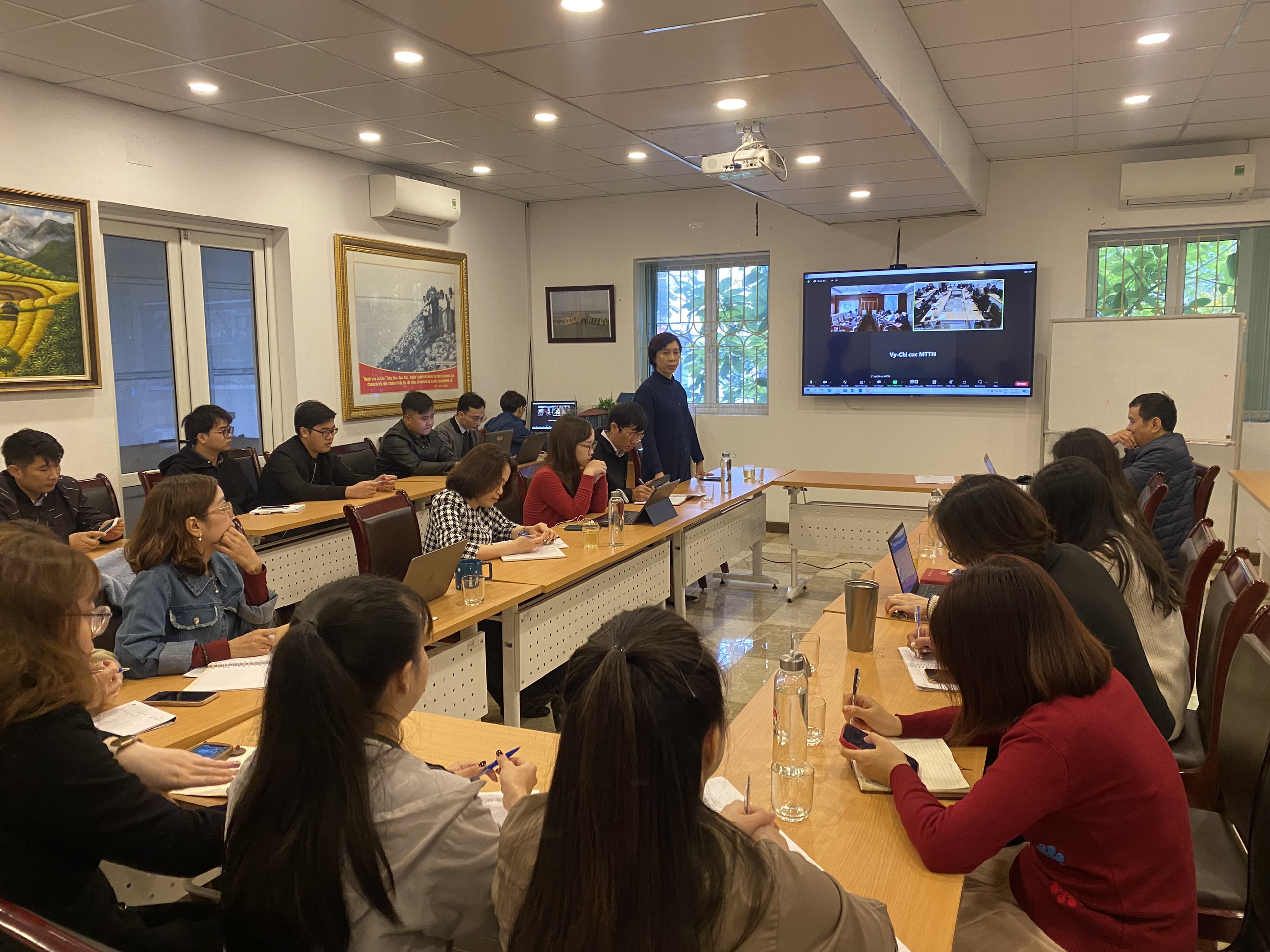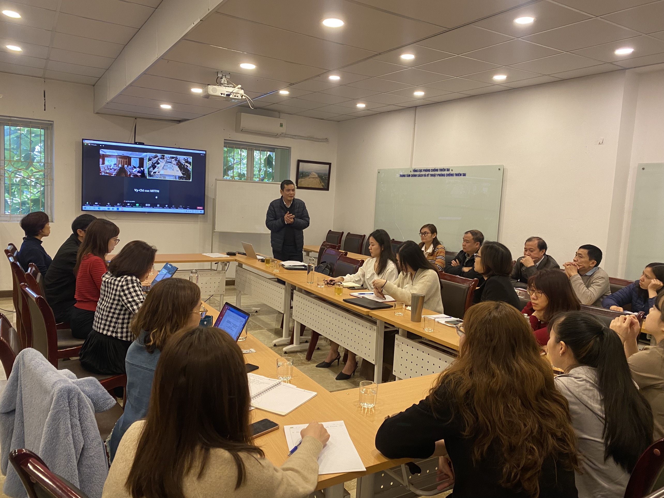 Buổi tập huấn diễn ra tại Phòng họp tầng 2 tại Trung tâm cùng sự tham gia của tất cả các đơn vị trực thuộc trung tâm. Khai mạc buổi tập huấn, bà Bùi Thị Quỳnh Nga – Giám đốc Trung tâm Chính sách và Kỹ thuật phòng chống thiên tai đã có phần phát biểu khai mạc.