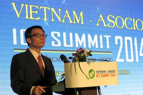 Phó Thủ tướng Vũ Đức Đam phát biểu tại Diễn đàn ASOCIO - ICT Summit 2014. Ảnh: M.Q