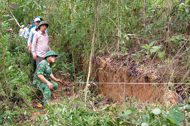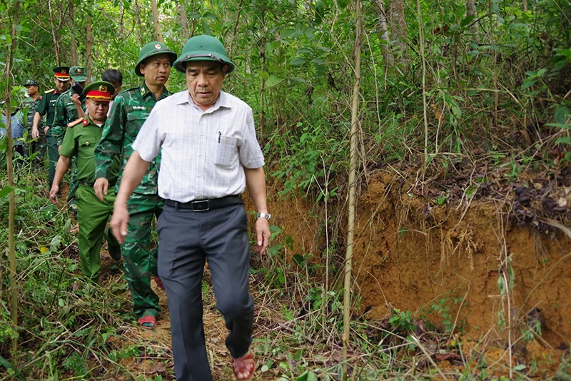 Chủ tịch Ủy ban nhân dân tỉnh Quảng Nam Lê Văn Dũng kiểm tra vết nứt tại thôn 56B, xã Đắc Pre, huyện Nam Giang