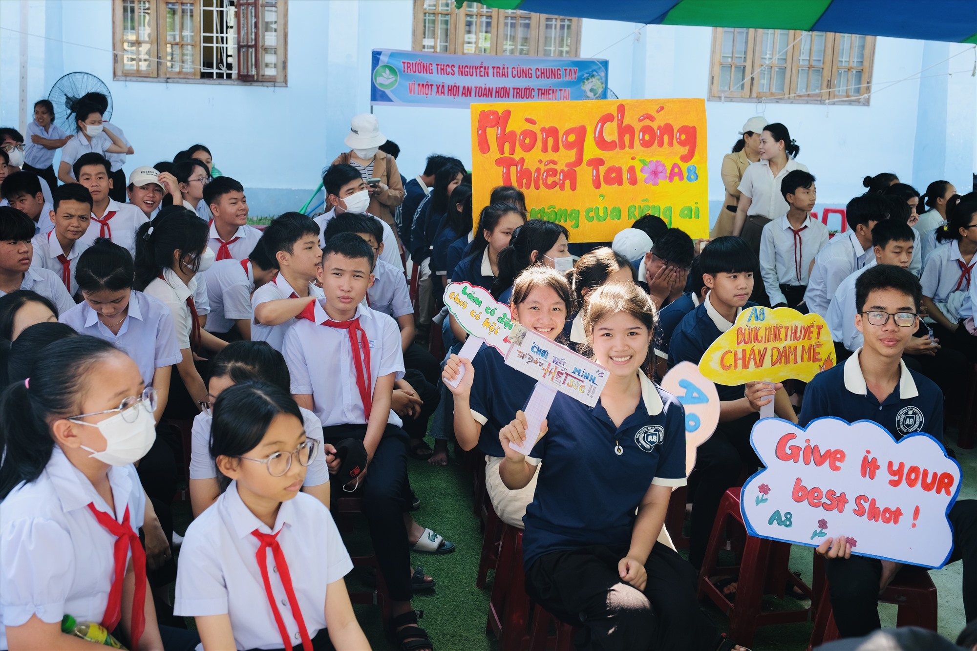 Vượt qua vòng sơ khảo, 100 thí sinh là học sinh của trường THCS Nguyễn Trãi đã sôi nổi tranh tài, vượt qua nhiều câu hỏi liên quan đến lĩnh vực phòng chống thiên tai, trong đó có kiến thức liên quan trực tiếp về hình thái thiên tai mà địa phương đang đối mặt.