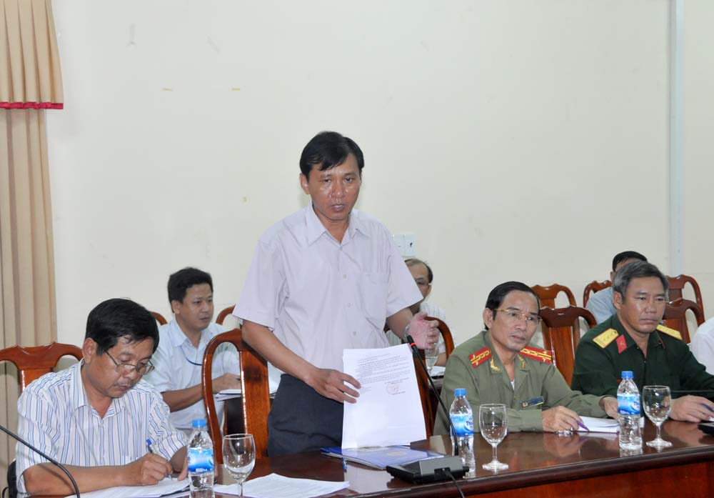 | Phó Chủ tịch UBND tỉnh Phạm Trường Thọ phát biểu chỉ đạo tại cuộc họp ứng phó với bão Haiyan |