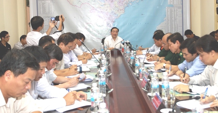 Phó Thủ tướng Hoàng Trung Hải chỉ đạo ứng phó cơn bão số 8. Ảnh: VGP/Lê Tuấn |