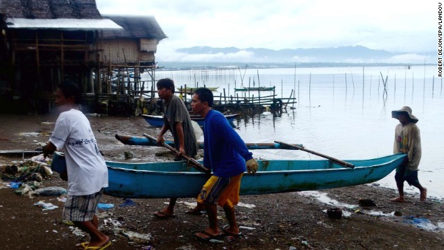 | Ngư dân khiêng thuyền tới nơi an toàn hôm 7/11 để tránh bão Haiyan tại Ormoc, Philippines |