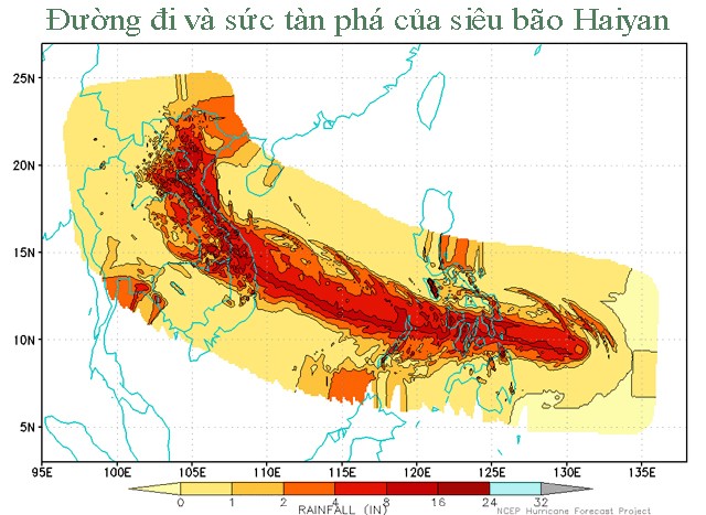 Romeo Cajulis, nhà khí tượng của chính phủ Philippines, nói rằng Haiyan sẽ tràn qua nhiều đảo ở miền trung Philippines với tốc độ 39 km/h trong hơn 10 giờ tới trước khi tiến ra Biển Đông vào buổi tối nay hoặc sáng mai. Sức mạnh của nó sẽ giảm nhẹ sau khi tràn qua đất liền, nhưng PAGASA nhận định nó vẫn là siêu bão rất mạnh trong quá trình càn quét Philippines.