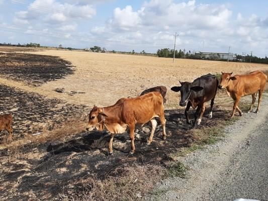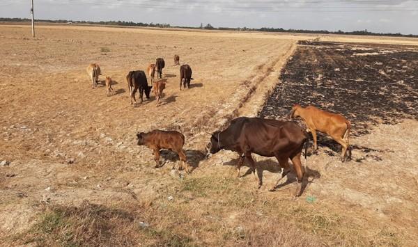 Lũ bò ráng vơ vét mớ lúa khô- Ảnh: Vũ Phong