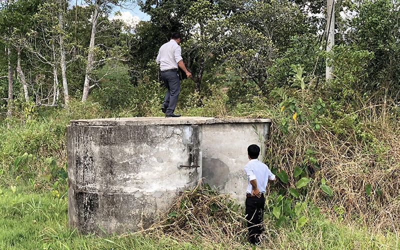 Chúng tôi có mặt tại một công trình nước sạch của xã Sơn Định huyện Sơn Hòa, chứng kiến cảnh khô hạn thật khốc liệt trong vòng 15 năm qua tại đây. Một giếng đào ngay trong lòng của một hồ nước sâu ở thôn Hòa Bình nhưng cũng không còn nước. Cạnh đó là nhà điều hành, trạm bơm điện, đường ống dẫn nước… tất cả đang trở thành hoang phế.