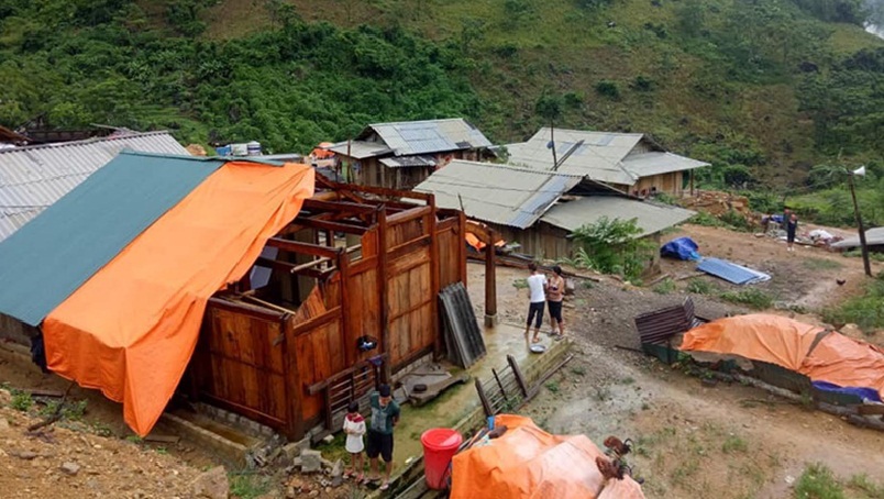 Do ảnh hưởng của hoàn lưu bão số 4 đã khiến hàng chục nhà dân ở các huyện Phù Yên, Vân Hồ (tỉnh Sơn La) bị tốc mái