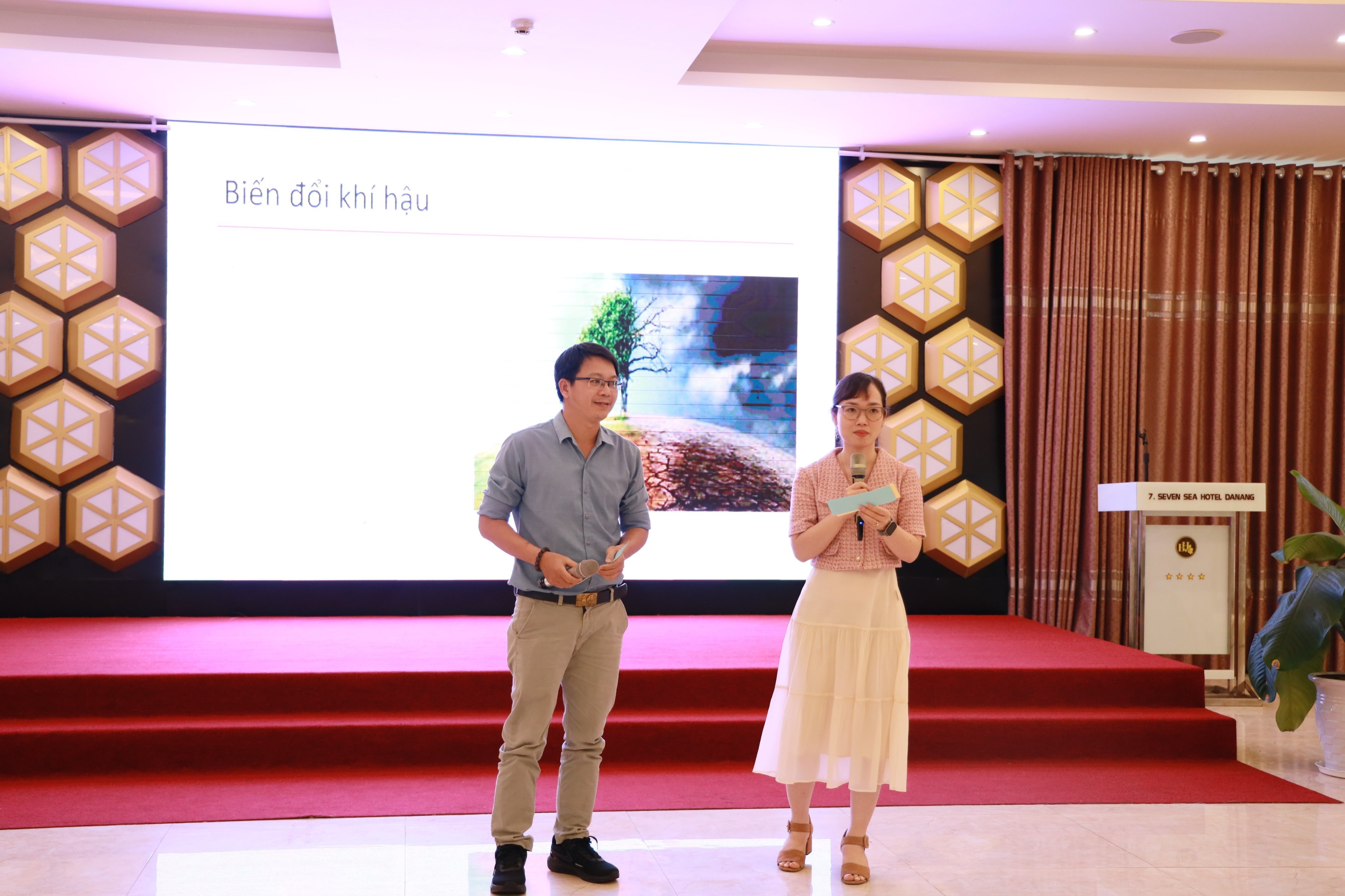 Tập huấn viên của Trung tâm hướng dẫn các học viên hiểu, phân biệt các khái niệm: “Biến đổi khí hậu”, “ Khí hậu” và “ Thời tiết”.