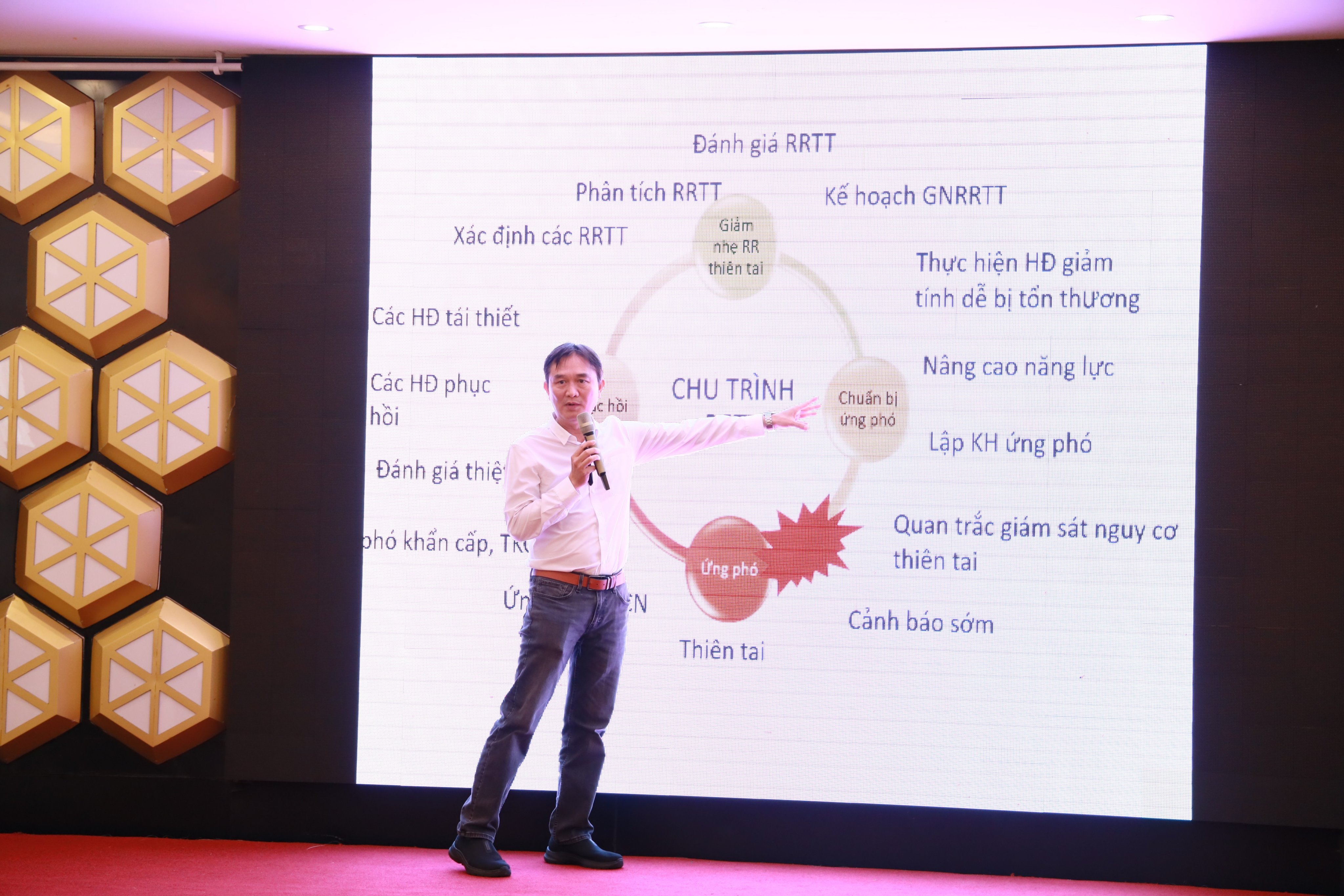 Ông Lý Phát Việt Linh - Chuyên gia Giảm nhẹ rủi ro thiên tai và Biến đổi khí hậu - Quỹ Nhi đồng Liên Hợp Quốc (UNICEF) tại Việt Nam chia sẻ tại khoá tập huấn.