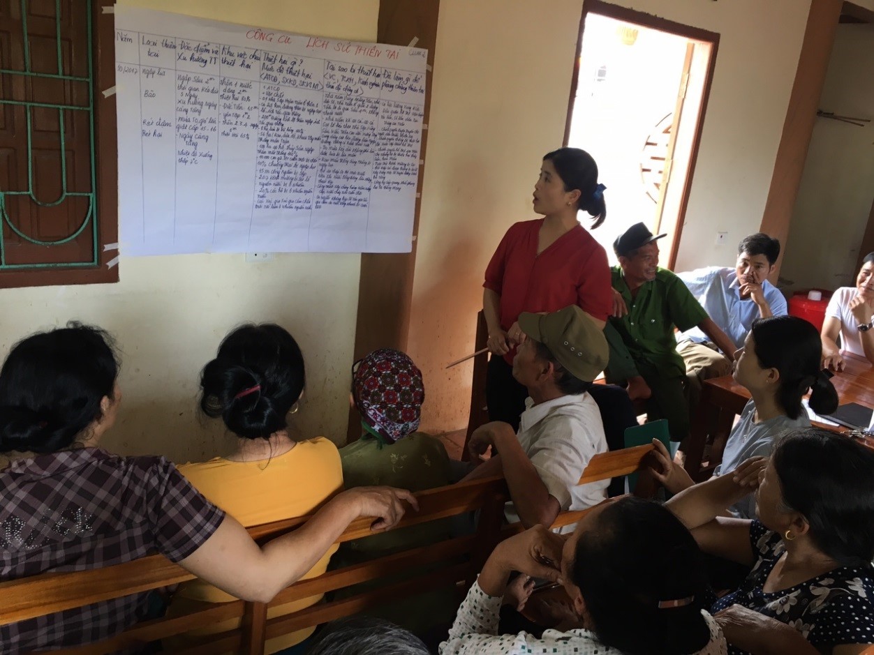 Tại lớp tập huấn, học viên được hướng dẫn kiến thức chung về Quản lý rủi ro thiên tai dựa vào cộng đồng và thực hành các công cụ Đánh giá rủi ro thiên tai dựa vào cộng đồng. Sau quá trình đánh giá tại thôn/cụm thôn, học viên thảo luận và xây dựng Báo cáo Đánh giá rủi ro thiên tai cấp xã, là cơ sở để lập Kế hoạch Phòng chống thiên tai và phương án ứng phó thiên tai cấp xã.