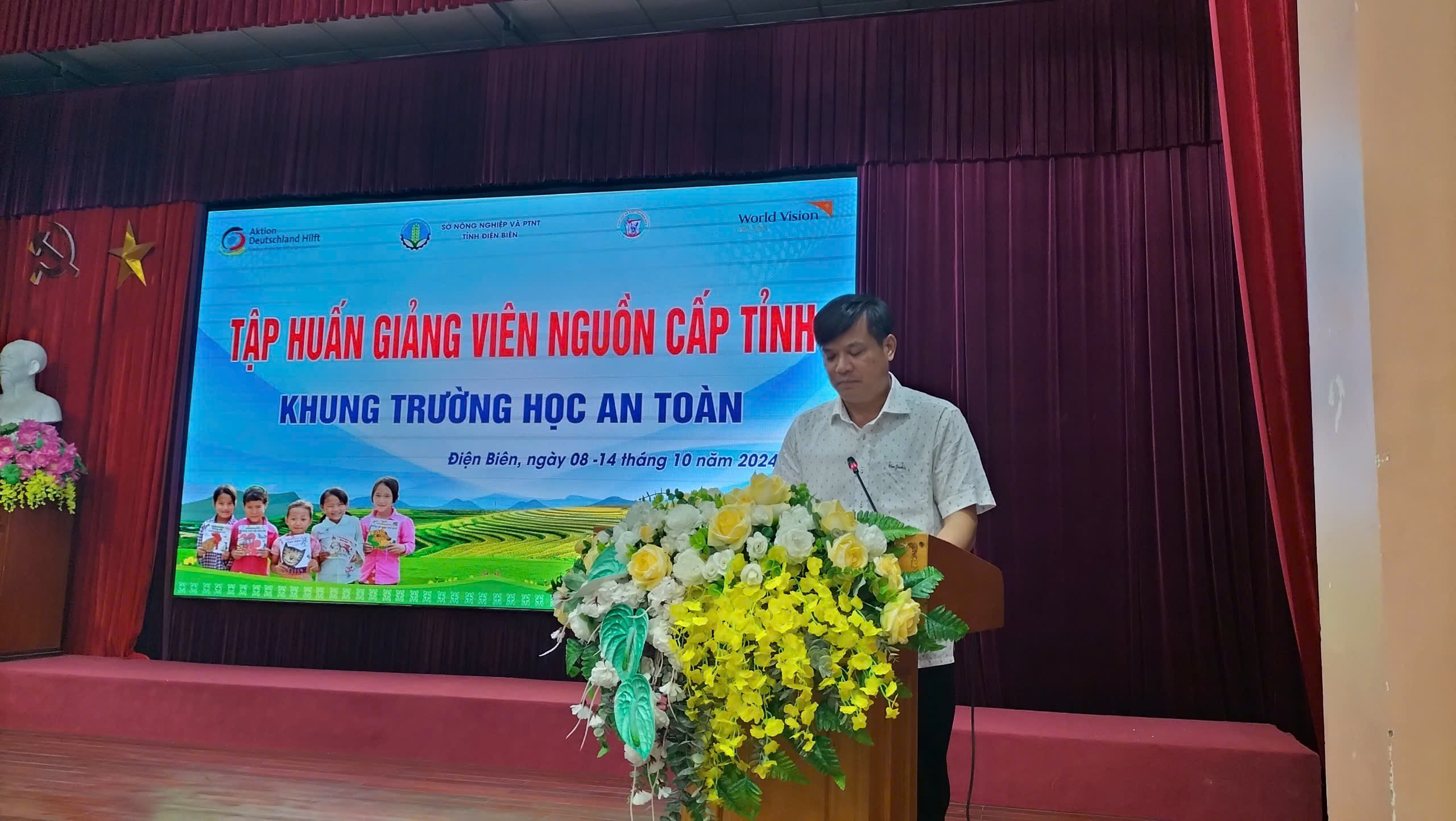 Phát biểu khai mạc, ông Lò Văn Cương - Giám đốc Sở Nông nghiệp và Phát triển nông thôn - và bà Lò Thị Thời - Phó Giám đốc Sở Giáo dục và Đào tạo - nhấn mạnh vai trò của trường học an toàn trước thiên tai và ý nghĩa thiết thực của khóa tập huấn. Khoá tập huấn không chỉ góp phần nâng cao nhận thức của cộng đồng về tầm quan trọng của công tác phòng chống thiên tai, trường học an toàn mà còn giúp các học viên trang bị kỹ năng, sẵn sàng ứng phó với những tình huống có thể xảy ra trong môi trường giáo dục.