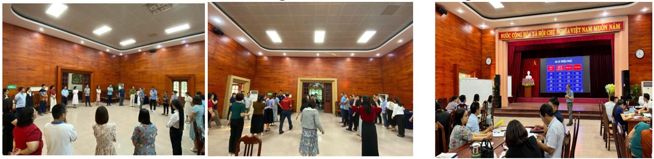 Trong 07 ngày tập huấn, các học viên tham gia tích cực trong các hoạt động của khóa tập huấn như phát biểu ý kiến, thảo luận và trình bày hoạt động thảo luận nhóm. Học viên tham gia tích cực vào các hoạt động trò chơi kết hợp ôn bài, đồng thời hăng hái phát biểu ý kiến trong quá trình tập huấn và chủ động, nhiệt tình, trách nhiệm trách tham gia thực hành, thực địa đánh giá RRTT trường học tại địa phương.