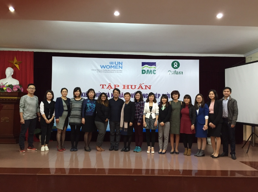 Tham dự khóa tập huấn có các cán bộ của Trung tâm DMC và các giảng viên đến từ các tổ chức Oxfam, UNWomen, và giảng viên kỹ năng đến từ Trung tâm Training better life.