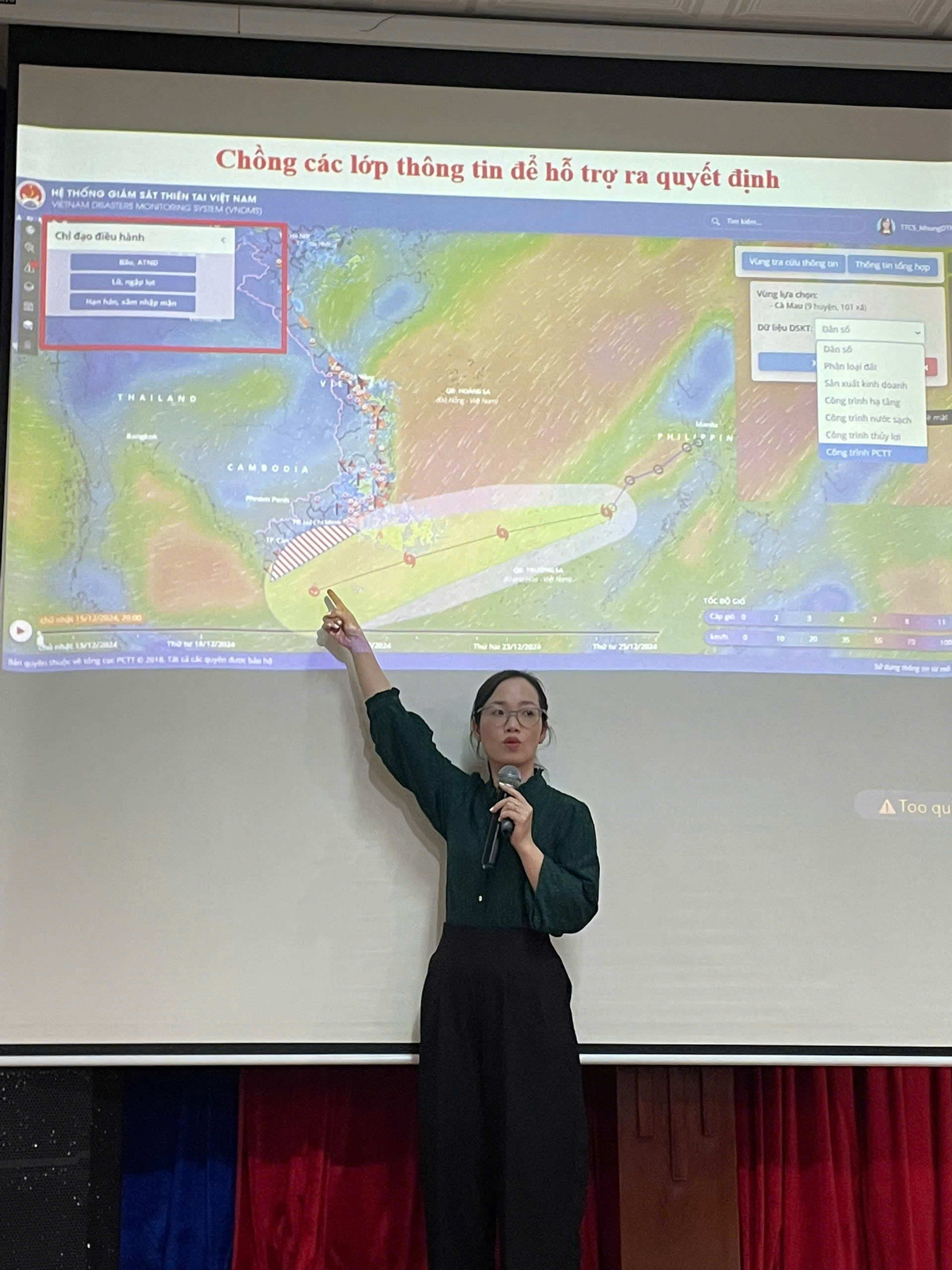 - Giới thiệu phần mềm cơ sở dữ liệu dân sinh, kinh tế và bộ chỉ số dân sinh kinh tế phục vụ phòng chống thiên tai. Phần mềm được Ban Chỉ đạo Quốc gia về Phòng chống thiên tai xây dựng từ năm 2019 và được nâng cấp năm 2022 để phục vụ cho công tác phòng chống thiên tai. Trải qua 5 năm sử dụng, hiện tại phần mềm đã tổng hợp dữ liệu của 8 tỉnh gồm Lào Cai, Hà Tĩnh, Quản Bình, Quảng Trị, Huế, Đà Nẵng, Quảng Ngãi, Phú Yên, Cà Mau, Gia Lai và 139 xã ven biển của các tỉnh từ Quảng Ninh đến Nam Định.