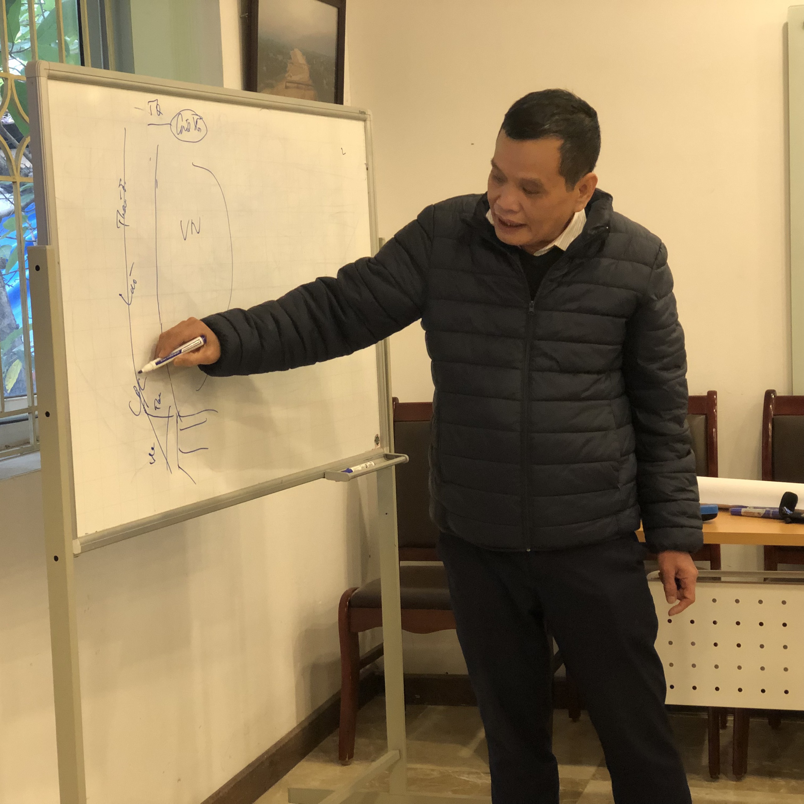 Chuyên gia Nguyễn Viết Tiến, Nguyên Vụ trưởng Vụ Pháp chế, Thanh tra-Tổng cục Phòng, chống thiên tai, giảng dạy tại buổi tập huấn "“Công tác dự báo lũ và một số vấn đề trong sử dụng bản tin dự báo lũ”