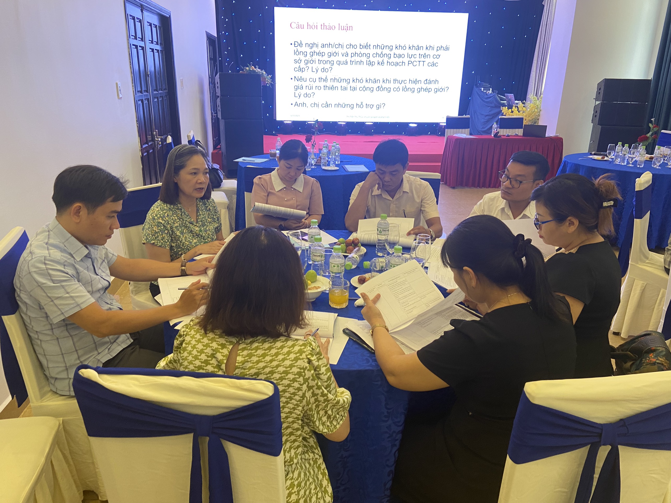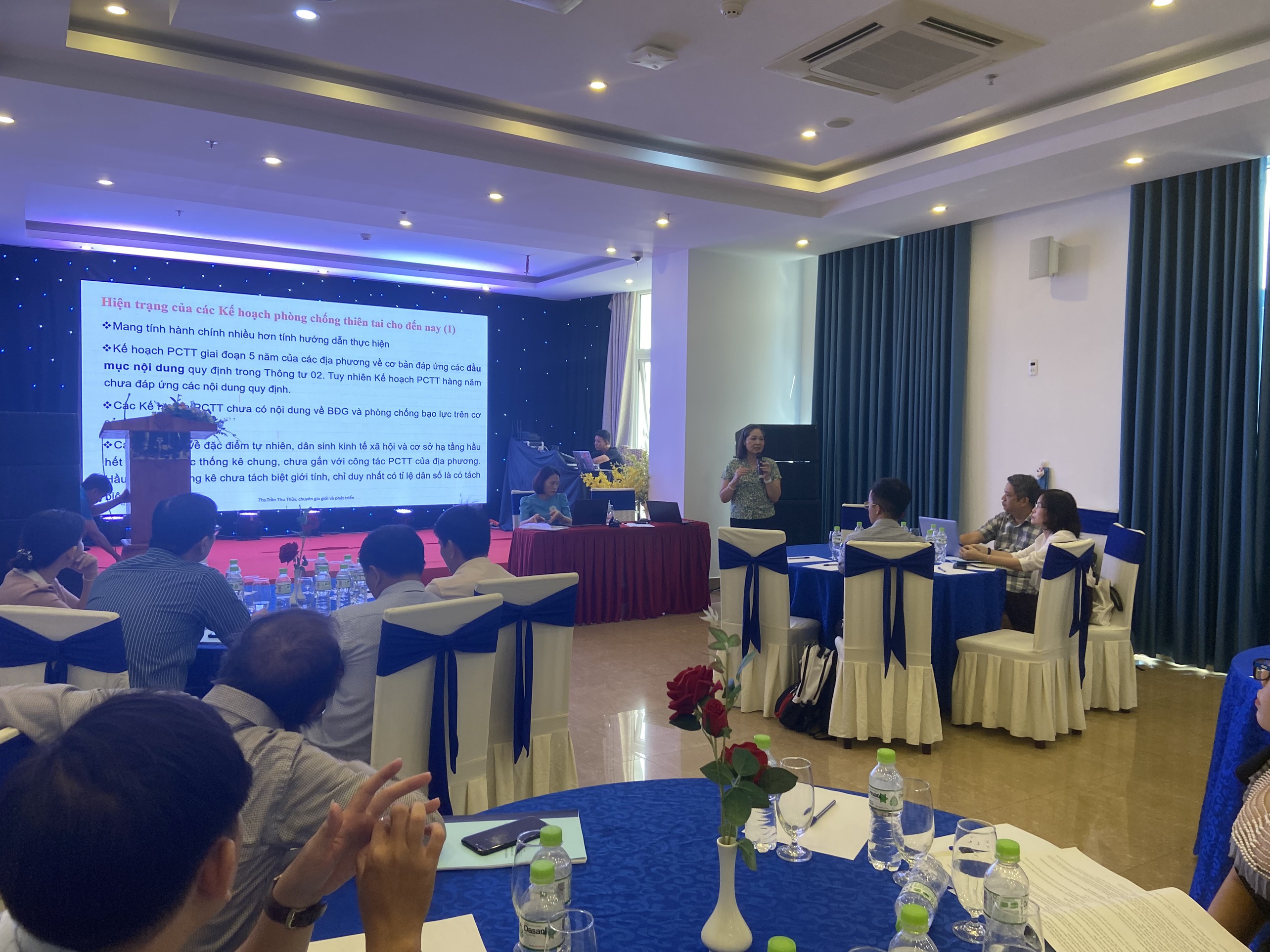 Tại Hội thảo, các đại biểu đã được các chuyên gia chia sẻ những khái niệm về giới, bình đẳng giới và bạo lực giới; những điểm mới trong bản dự thảo tài liệu hướng dẫn; thảo luận những nội dung và dữ liệu về giới và phòng chống bạo lực trên cơ sở giới cần được lồng ghép trong kế hoạch phòng chống thiên tai các cấp của địa phương.