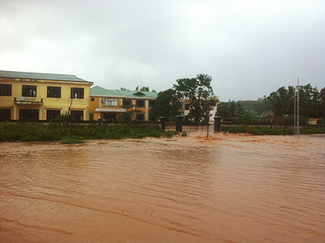 Trung tâm y tế huyện đã bị ngập nước.