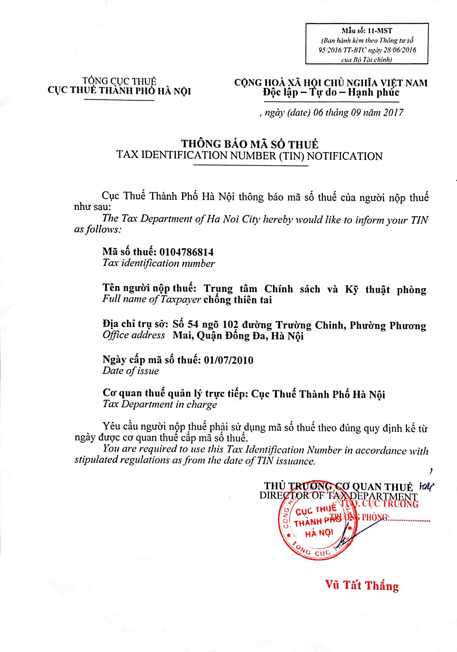 TRUNG TÂM CHÍNH SÁCH VÀ KỸ THUẬT PHÒNG CHỐNG THIÊN TAI