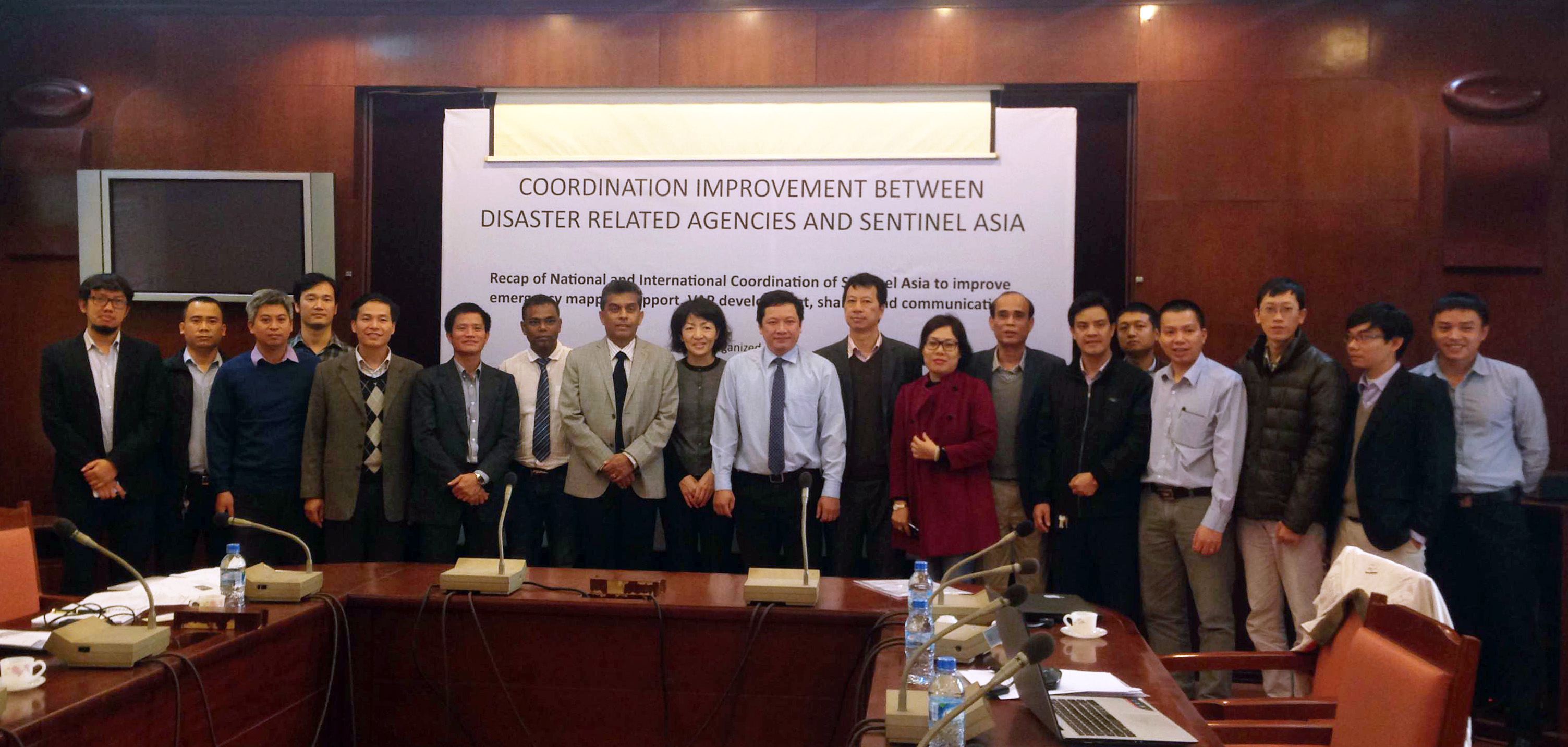 Buổi tọa đàm gồm các cán bộ kỹ thuật, chuyên gia và lãnh đạo thuộc Viện Công nghệ vũ trụ (STI - VAST), Cục viễn thám quốc gia (NRSD – MONRE), Trung tâm Phòng tránh và Giảm nhẹ thiên tai (DMC – MARD), Cơ quan khai thác không gian Nhật Bản (JAXA), Trung tâm Địa không gian (GIC – AIT).