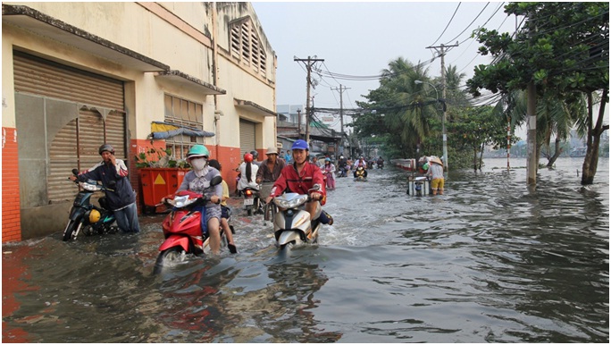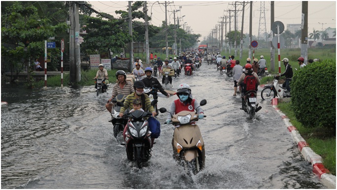 Tại huyện Nhà Bè, TP.HCM triều cường cũng gây ngập nặng trên nhiều tuyến đường như Lê Văn Lương (đoạn đi qua xã Nhơn Đức), Đào Sư Tích (đoạn đi qua xã Phước Lộc), Nguyễn Hữu Thọ và Huỳnh Tấn Phát thuộc huyện Nhà Bè, nước ngập khoảng 20cm khiến xe cộ qua lại gặp nhiều khó khăn.