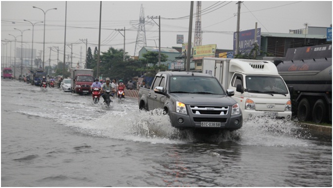Ghi nhận tại quốc lộ 1A (đoạn qua P.Tân Tạo A, và P.Bình Trị Đông B, Q.Bình Tân), nước lên cao làm ngập một đoạn dài gần 1km. Nước ngập sâu tràn lên lề đường dành cho người đi bộ, có đoạn nước lên gần yên xe máy, xe cộ qua khu vực này gặp nhiều khó khăn. Nhiều xe chết máy phải dẫn bộ, dịch vụ sửa xe di động nhân dịp này “ăn nên làm ra”. Nước ngập sâu, xe cộ bị sụp ổ gà thường xuyên, người dân khu vực xung quanh phải dùng rào chắn để cảnh báo.
