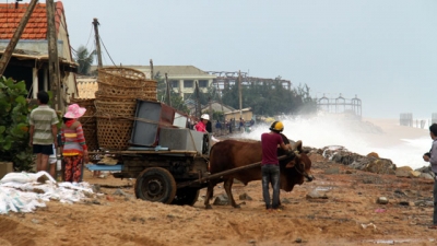 Tại hiện trường, hàng chục nhà dân khác cũng bị sóng đánh đổ tường, sạt lở móng, nước biển, cát tràn ngập. Nhiều nhà, bị cát tràn vào nhà cao hơn 1m. Đường Đinh Tiên Hoàng qua khu dân cư xóm Rớ cũng bị cát tràn lấp ngập hơn 0,5m, ách tắc giao thông. Chính quyền địa phương huy động lực lượng cứu hộ khẩn trương di dời người, tài sản đến nơi an toàn.