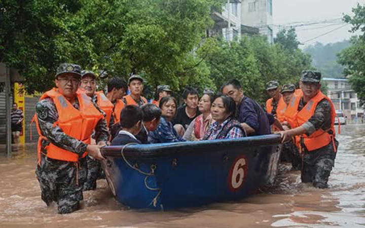 Quân đội Trung Quốc sơ tán người dân khỏi vùng lụt.