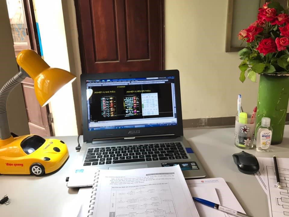 Một góc bàn làm việc trực tuyến tại nhà của cán bộ Trung tâm