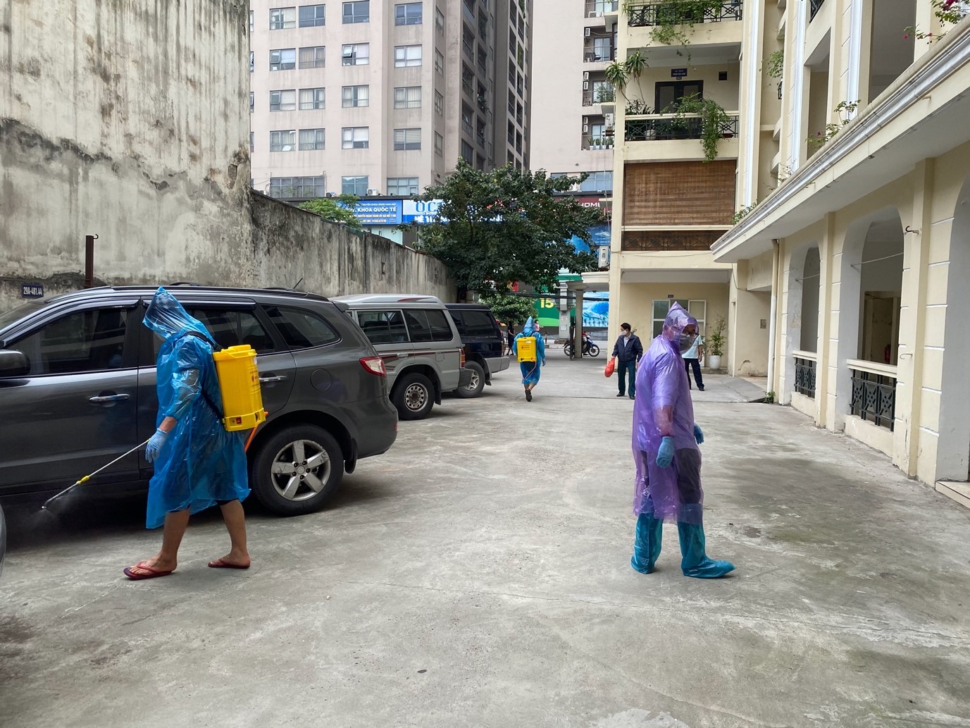Đoàn thanh niên phun thuốc khử trùng Khu liên cơ