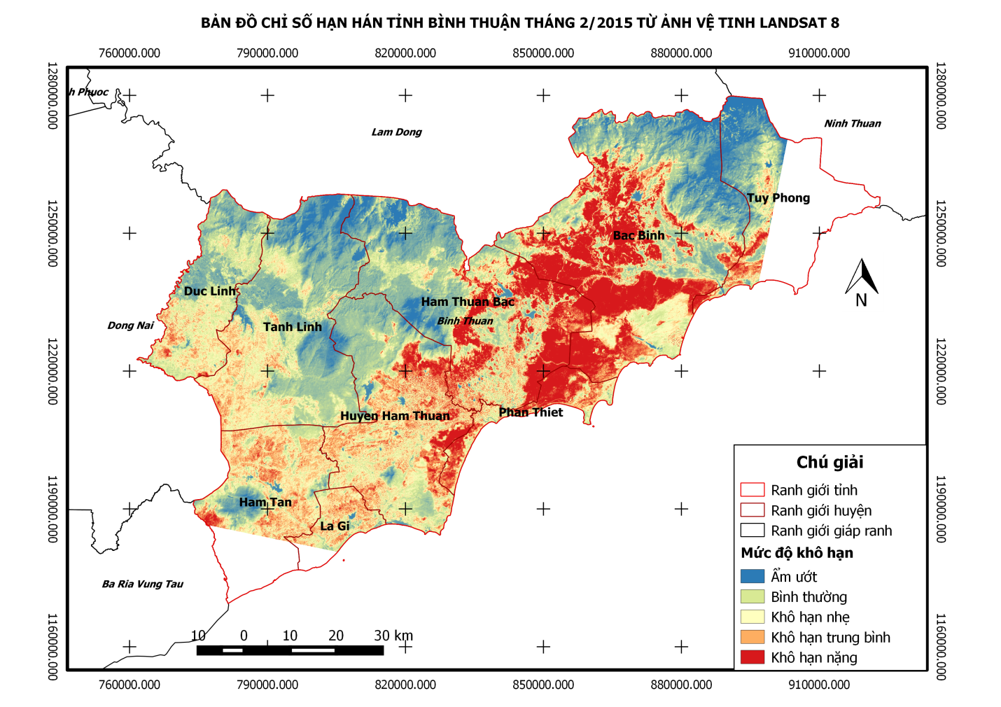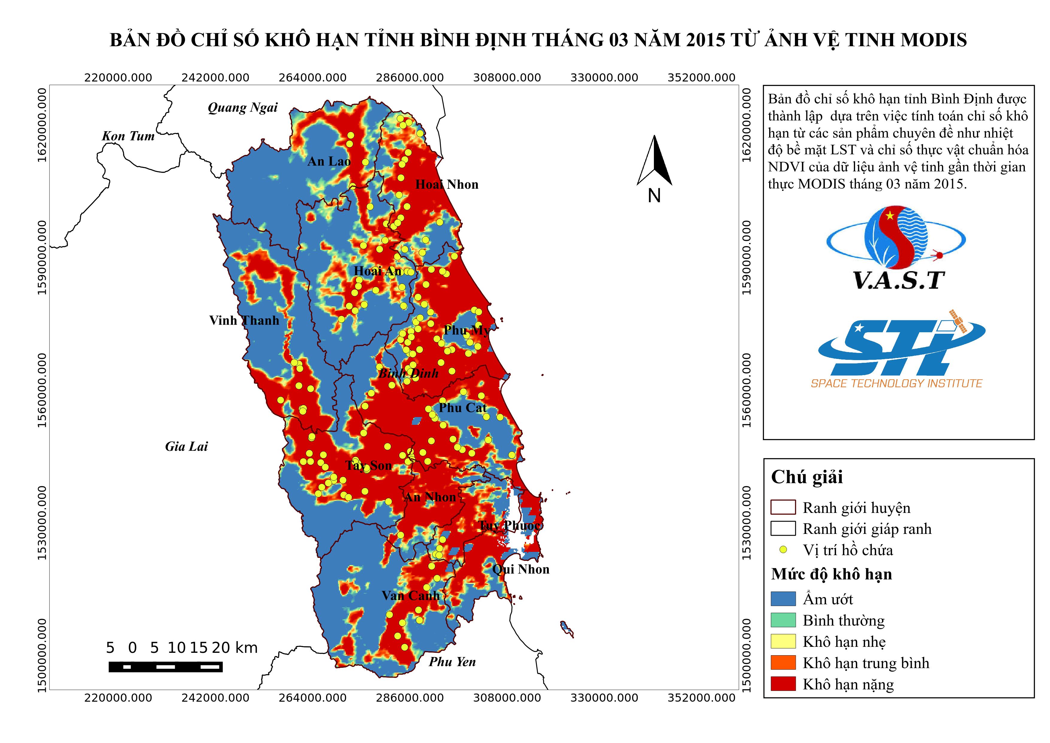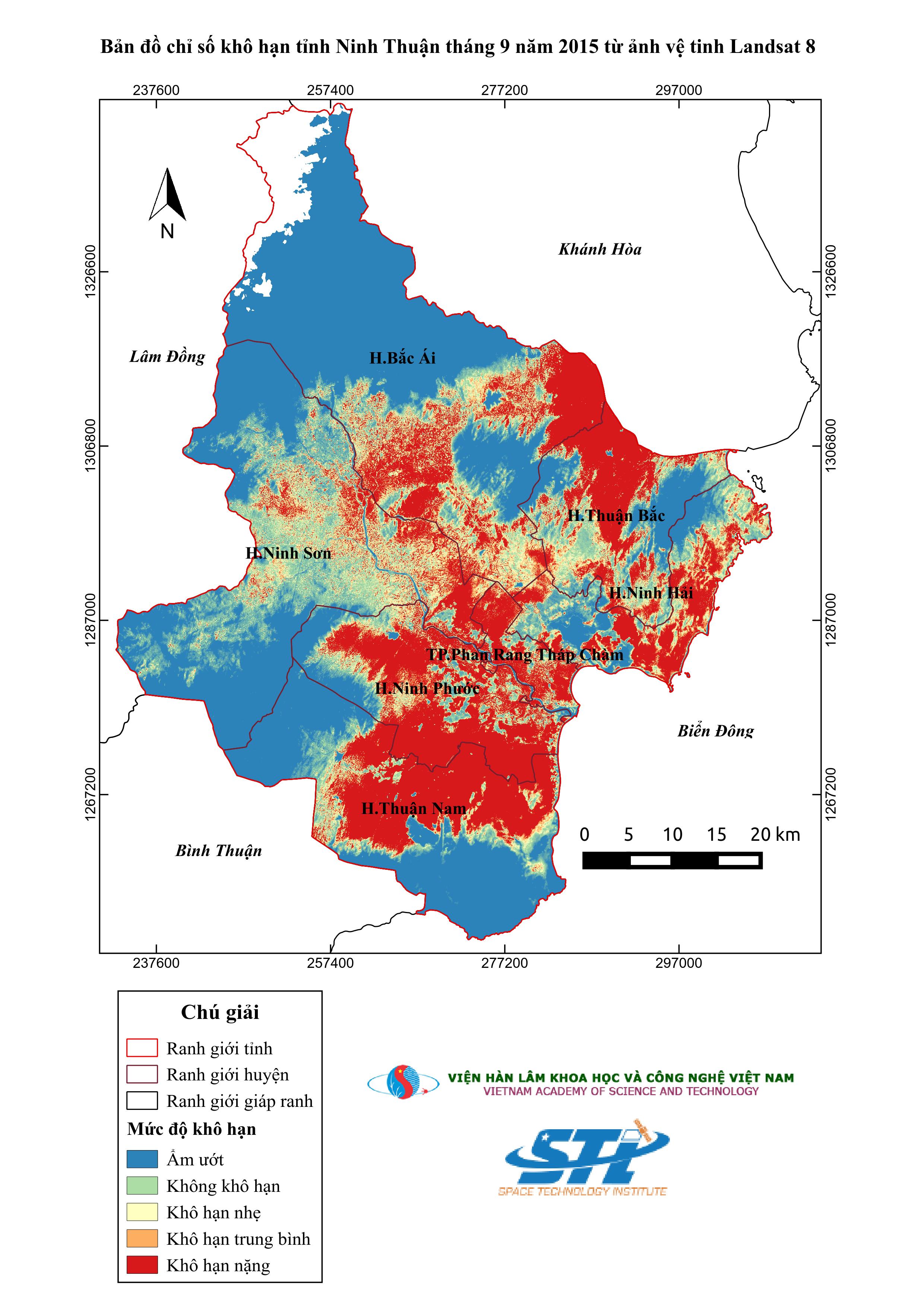 Trong khuôn khổ hợp tác giữa Viện Hàn lâm Khoa học và Công nghệ Việt Nam, Tổng cục Thủy lợi, Viện Công nghệ Vũ trụ đã phối hợp với Trung tâm Phòng tránh và Giảm nhẹ thiên tai, một số cơ quan tại địa phương đã bước đầu triển khai ứng dụng một số nguồn tư liệu ảnh viễn thám miễn phí để nhận diện các khu vực có nguy cơ xẩy ra hạn hán trên địa bàn một số tỉnh Nam Trung Bộ (Bình Định, Bình Thuận và Ninh Thuận).