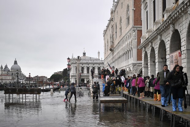 Trong tuần này, 2 đợt triều dâng liên tiếp đã nhấn chìm Venice, trong đó đợt triều ngày 12/11 có đỉnh cao tới 1,87 mét, là mức cao nhất kể từ năm 1996. Do ảnh hưởng của triều cường, ít nhất đã có 2 người thiệt mạng và nhiều công trình văn hóa đe dọa bị hư hại.