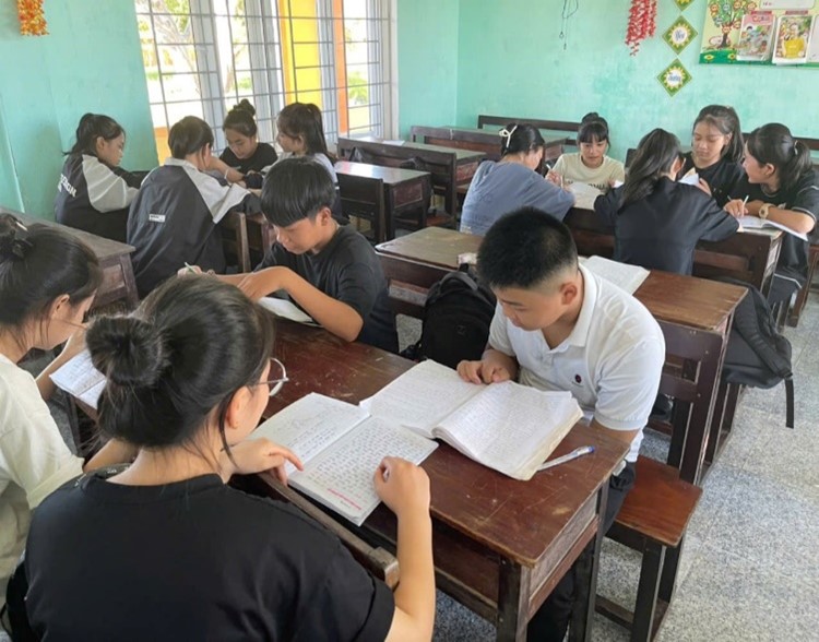 Các em học sinh Trường THCS Tân Ninh và THCS Xuân Ninh đang ôn bộ đề câu hỏi để chuẩn bị cho vòng sơ khảo