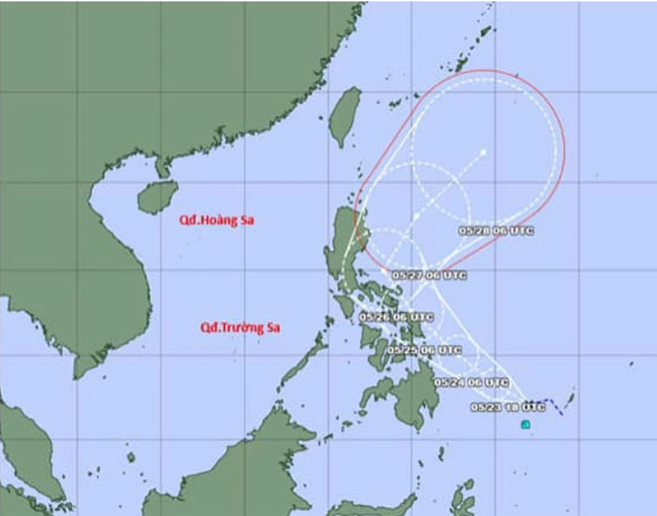 Hồi 13 giờ chiều 23/5, vị trí tâm áp thấp nhiệt đới ở vào khoảng 7,1 độ vĩ bắc, 132 độ kinh đông, áp thấp nhiệt đới di chuyển theo hướng Tây Tây Bắc.