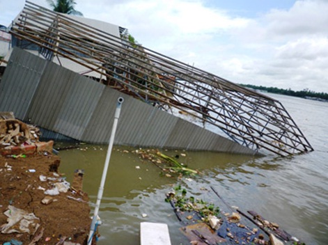 | Xưởng nước đá bị sụp xuống sông Hậu |